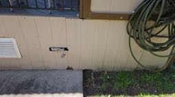 #211: North end of property, marked with styrofoam. Under the fake rock. Located 3ft from sprinkler (August 2025).