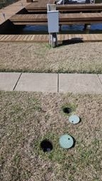 After the water recedes, we use an adapter plate (Pete designed and 3D printed) along with compressed air to blow water out of all conduits on each of the five docks. This is typically a half-day operation. Also, typically, we have to replace several GFCI outlets after each flood event. Each community member is responsible for the cost of replacing the GFCI outlet for their slip.