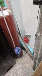 #202: The only known cutoff is located inside the garage along the back wall of the workshop (single garage door). Must remove cover plate (arrow) to get to it.